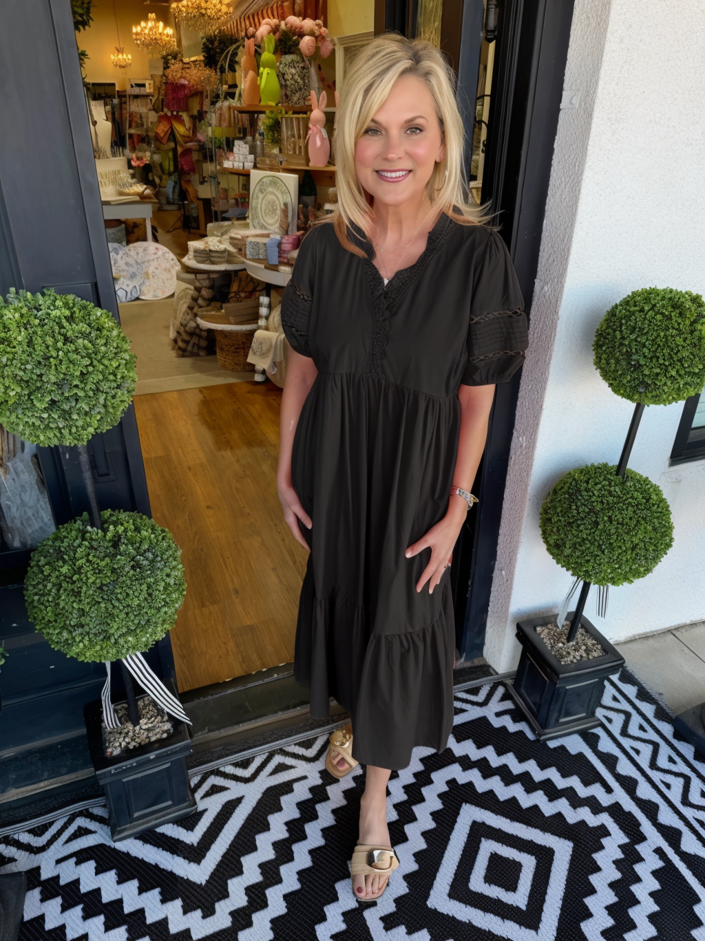 Model is 5’5, size 6 wearing a Small