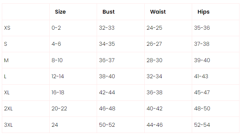SIZE CHART: